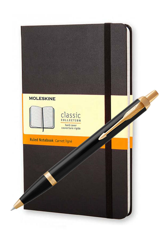 Parker IM Metal Black GT Moleskine от официального дилера Parker в Сыктывкаре. Вы можете дополнительно заказать гравировку, которая подчеркнет Вашу оригинальность и придаст памятность статусному подарку. Все ручки Паркер поставляются в фирменном футляре.